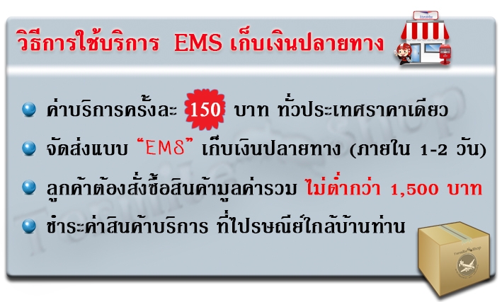 *** Note : หากสินค้าเกินกว่า 3 กิโลกรัม จะจัดส่งแบบพัสดุธรรมดาเก็บเงินปลายทางแทน (ค่าบริการ 150 บาทเท่าเดิม)